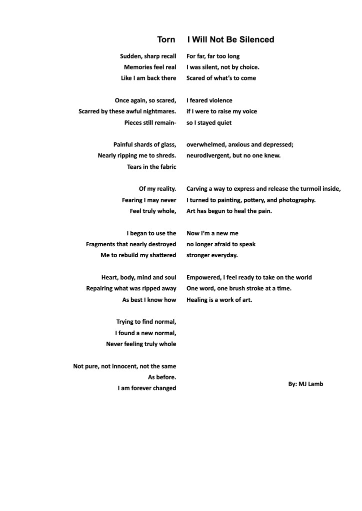 This work represents the space a survivor longed to fill with art, a reflection of her journey. The idea thrilled her, bringing a spark of joy. Yet, each time she picked up a camera to create, it triggered a trauma response. As much as she yearned for creativity, she wasn’t ready— yet.