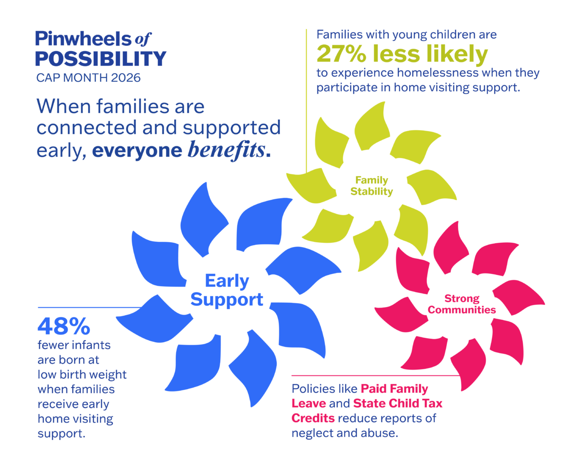 “During the month of April, we recognize National Child Abuse Prevention Month (NCAPM) and the importance of communities working together to help families thrive and prevent child maltreatment. Throughout the year, communities are encouraged to increase awareness about child and family well-being and work together to implement effective strategies that support families and prevent child abuse and neglect.”